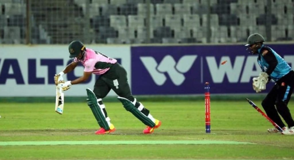 রূপগঞ্জের বিপক্ষে খোলস ছাড়ার অপেক্ষায় ছিলেন সাকিব নিজেও। কিন্তু সোহাগ গাজীর ঘূর্ণিতে কিছুতেই সফল হতে পারছিলেন না। টানা ৪ বলে আসেনি কোন রান। পরের ওভারে শহীদের বলেও রান নেই। প্রেসার যাচ্ছিল বেড়ে। এরপর ইনিংসের ৬ষ্ঠ বলে থার্ডম্যানে পিনাকের তালুবন্দি হয়ে শূন্য রানে ক্রিজ ছাড়েন মোহামেডান অধিনায়ক।