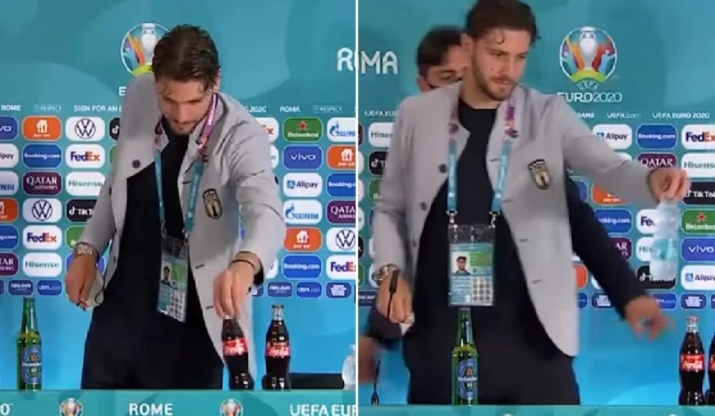 ইউরো-২০২০ আসরে সংবাদ সম্মেলনের টেবিল থেকে কোকাকোলার বোতল সরিয়ে রাখা সর্বশেষ খেলোয়াড় হলেন এবার ইতালির মিডফিল্ডার ম্যানুয়েল লোকাতেল্লি। ক্রিস্টিয়ানো রোনালদোর মতো ‘অ্যাগুয়া’ (পানি) শব্দটিও ব্যবহার করেছেন লোকাতেল্লি। তবে সিআরসেভেন আগে কোকাকোলার বোতল সরিয়ে পরে পানির বোতল টেনে এনেছিলেন সামনে। সুইজারল্যান্ডের বিরুদ্ধে ৩-০ গোলে জয়ের পর সংবাদ সম্মেলনে এসে লোকাতেল্লি করেছেন উল্টোটা।