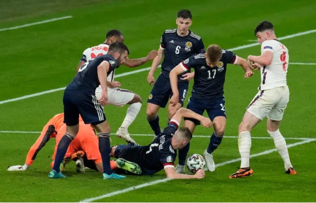 লন্ডনের ওয়েম্বলি স্টেডিয়ামে শুক্রবার রাতে গ্রুপ ডি’র ম্যাচে শুরু থেকে বল দখলে এগিয়ে থাকে ইংল্যান্ড। তবে স্কটিশ সিডিএম বিলি গিলমোর এদিন ছিলেন এনগোলো কান্তের মতোই দুর্দান্ত। গিলমোরের ইন্টারসেপশনে দানা বাঁধতে পারেনি ইংল্যান্ডের একাধিক আক্রমণ। এছাড়া ক্যালভিন ফিলিপসের পারফরমেন্সও ক্রোয়েশিয়া ম্যাচের মতো ছিল না এবার। কেবল ফিল ফোডেনের দিকে বাড়ানো দুর্দান্ত একটা পাস বাড়িয়েছিলেন ফিলিপস, দারুণভাবে যা নিজ আয়ত্তে নিয়ে একটুর জন্য বাইরে মারেন ফোডেন।