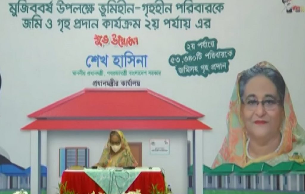 প্রধানমন্ত্রী বলেন, দেশের কোনো মানুষ গৃহহীন থাকবে না। তাদের ভাগ্যের উন্নয়নে সরকার কাজ করে যাচ্ছে। মুজিব বর্ষ উপলক্ষে দ্বিতীয় ৫৩ হাজার ৩৪০টি পরিবারকে দুই শতক জমিসহ সেমি-পাকা ঘর উপহার দেয়া হয়।