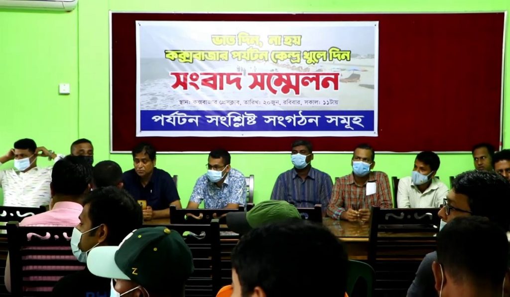 ‘ভাত দিন না হয় কক্সবাজারের পর্যটনকেন্দ্র খুলে দিন’ শিরোনামে কক্সবাজারের পর্যটনকেন্দ্র খুলে দেয়ার দাবিতে সংবাদ সম্মেলন করেছে পর্যটন সংশ্লিষ্ট ৯টি সংগঠন। আজ রোববার (২০ জুন) দুপুরে কক্সবাজার প্রেস ক্লাবে আয়োজিত সংবাদ সম্মেলনে পর্যটন সংশ্লিষ্ট ব্যবসায়ীদের পক্ষে লিখিত বক্তব্য তুলে ধরেন মফিজুর রহমান।