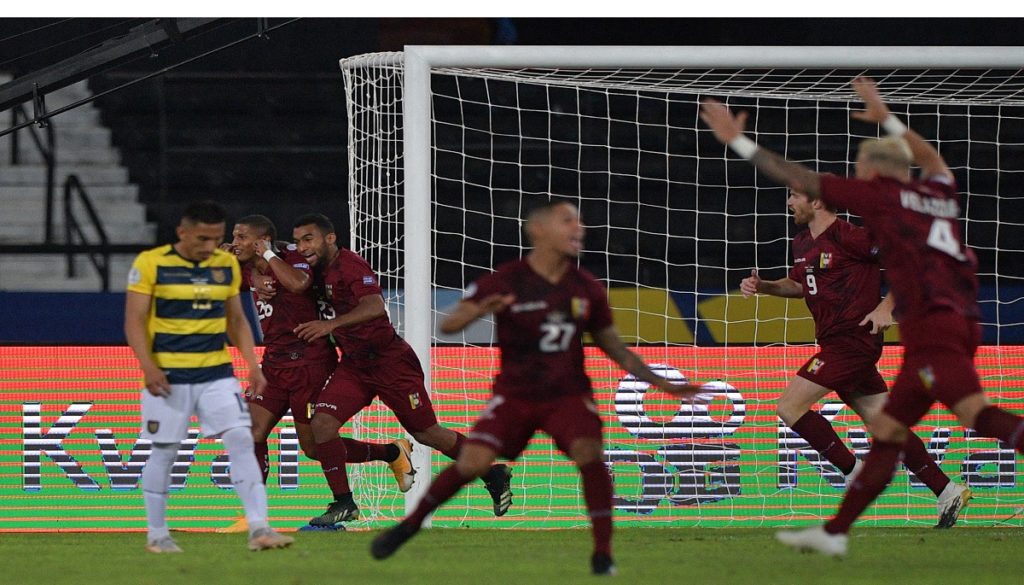 দক্ষিণ আমেরিকার ফুটবল শ্রেষ্ঠত্বের লড়াইয়ের গুরুত্বপূর্ণ ম্যাচে শেষ মুহূর্তের গোলে ইকুয়েডরের বিরুদ্ধে ড্র নিয়ে মাঠ ছেড়েছে ভেনেজুয়েলা। ২-২ গোলের সমতায় শেষ হয় ম্যাচটি। এতে ৩ ম্যাচে ২ পয়েন্ট নিয়ে গ্রুপের চতুর্থ স্থানে অবস্থান করছে ভেনেজুয়েলা। অন্যদিকে, ২ ম্যাচে খেলে মাত্র ১ পয়েন্ট নিয়ে পঞ্চম স্থানে অবস্থান করছে ইকুয়েডর।