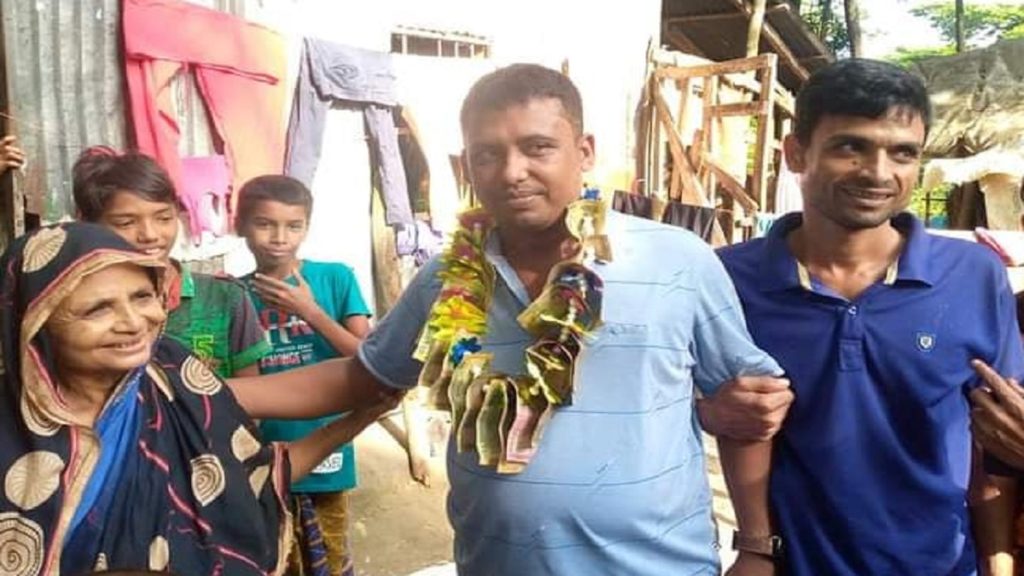 স্থানীয় সূত্র জানায়, রিপন পালোয়ান বর্তমান ইউনিয়ন পরিষদ সদস্য। ২১ জুনের নির্বাচনে তিনি সদস্য নির্বাচিত হয়েছেন। তাই এলাকার মানুষ ও আত্মীয়দের বাড়িতে বাড়িতে গিয়ে সবার সাথে দেখা করেন তিনি। এসময় শুভাকাঙ্খীরা তার গলায় টাকার মালা পরিয়ে দেয়।
