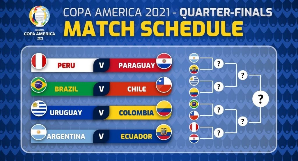 চূড়ান্ত হয়েছে কোপা আমেরিকার কোয়ার্টার-ফাইনালের লাইনআপ। যেখানে আয়োজক ব্রাজিল মুখোমুখি হবে চিলির। আর আর্জেন্টিনার প্রতিপক্ষ ইকুয়েডর।