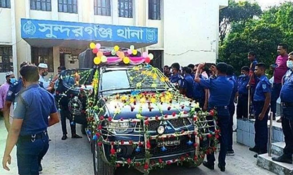 সুসজ্জিত গাড়িতে চেপে অবসরে গেলেন গাইবান্ধার পুলিশ কনস্টেবল ফরিদুল হক। দীর্ঘ ৪০ বছরের চাকরিজীবনের পরিসমাপ্তি ঘটিয়ে শেষ কর্মস্থল গাইবান্ধার সুন্দরগঞ্জ থানা থেকে রোববার দুপুরে তাকে বিদায়ী সংবর্ধনা দেওয়া হয়।