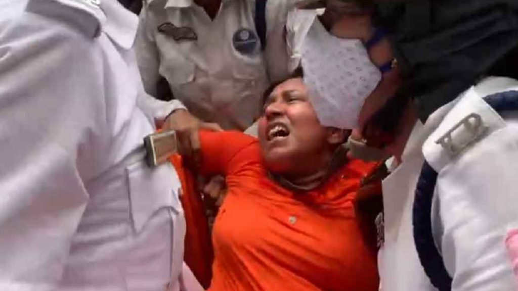 একটি পুলিশ বাস এনে এরপর আটক করা হয় বিজেপি নেতাকর্মীদের। আটক করা হয় বিজেপির নারী মোর্চার রাজ্য সভানেত্রী অগ্নিমিত্রা পালকে। নিকটস্থ সুবোধ মল্লিক স্কয়ারের কাছে মিছিল আটকানোর জন্য প্রস্তুত কলকাতা পুলিশ।