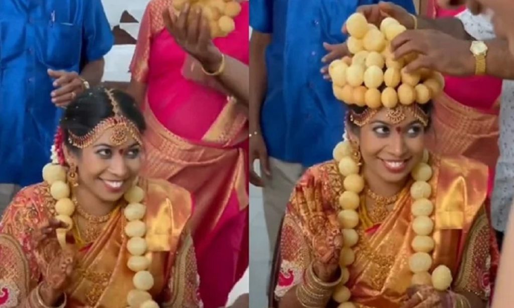 তার বিয়ের একটি ভিডিও ভাইরাল হয়েছে সামাজিক যোগাযোগ মাধ্যমে। ভিডিওতে দেখা গেছে, ভারতের ওই তরুণী বিয়ের দিন ফুচকার তৈরি মালা পরে কনের সাজে বসে আছেন।