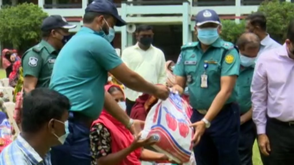 মহাখালী সাততলা বস্তির আগুনে ক্ষতিগ্রস্ত ৮০০ পরিবারের মাঝে ত্রাণ বিতরণ করেছে ডিএমপির গুলশান বিভাগ।