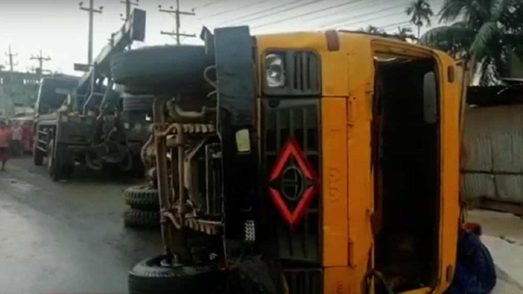 পুলিশ জানায়, ময়মনসিংহগামী লবনবাহী ড্রাম্প ট্রাক নিয়ন্ত্রণ হারিয়ে অটোরিকশার ওপর উল্টে যায়। এতে ঘটনাস্থলেই এক নারীসহ ২ জন নিহত হয়। আহত দুজনকে হাসপাতালে ভর্তি করা হয়েছে। দুর্ঘটনার পর প্রায় আধঘণ্টা সড়কে বন্ধ থাকে যান চলাচল।