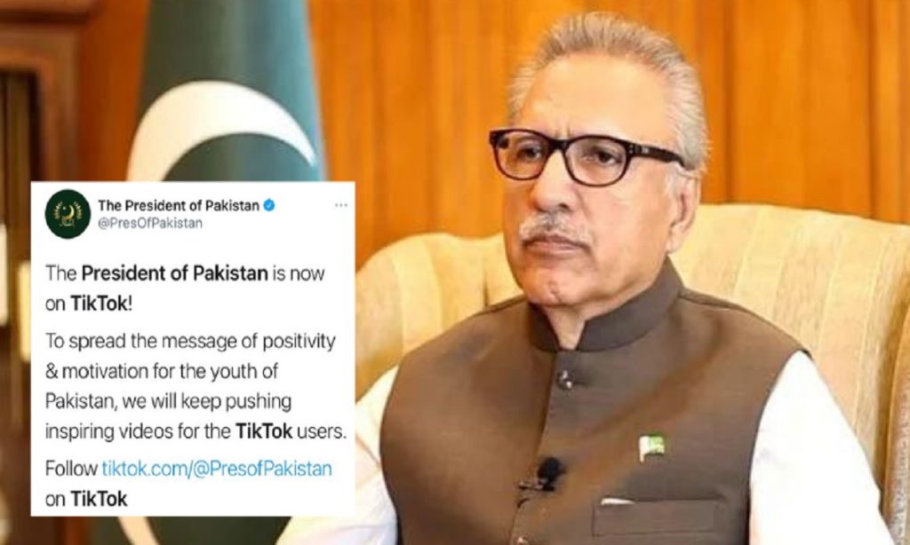পাকিস্তানি গণমাধ্যম ডন জানিয়েছে, শুক্রবার (১৬ জুলাই) প্রেসিডেন্ট আলভি টিকটকে অ্যাকাউন্ট খুলেছেন। প্রেসিডেন্টের অফিশিয়াল টুইটার অ্যাকাউন্ট থেকে এ তথ্য জানানো হয়। সেখানে টিকটক অ্যাকাউন্টের লিংক শেয়ার করে বলা হয়, পাকিস্তানের প্রেসিডেন্ট এখন টিকটকে।