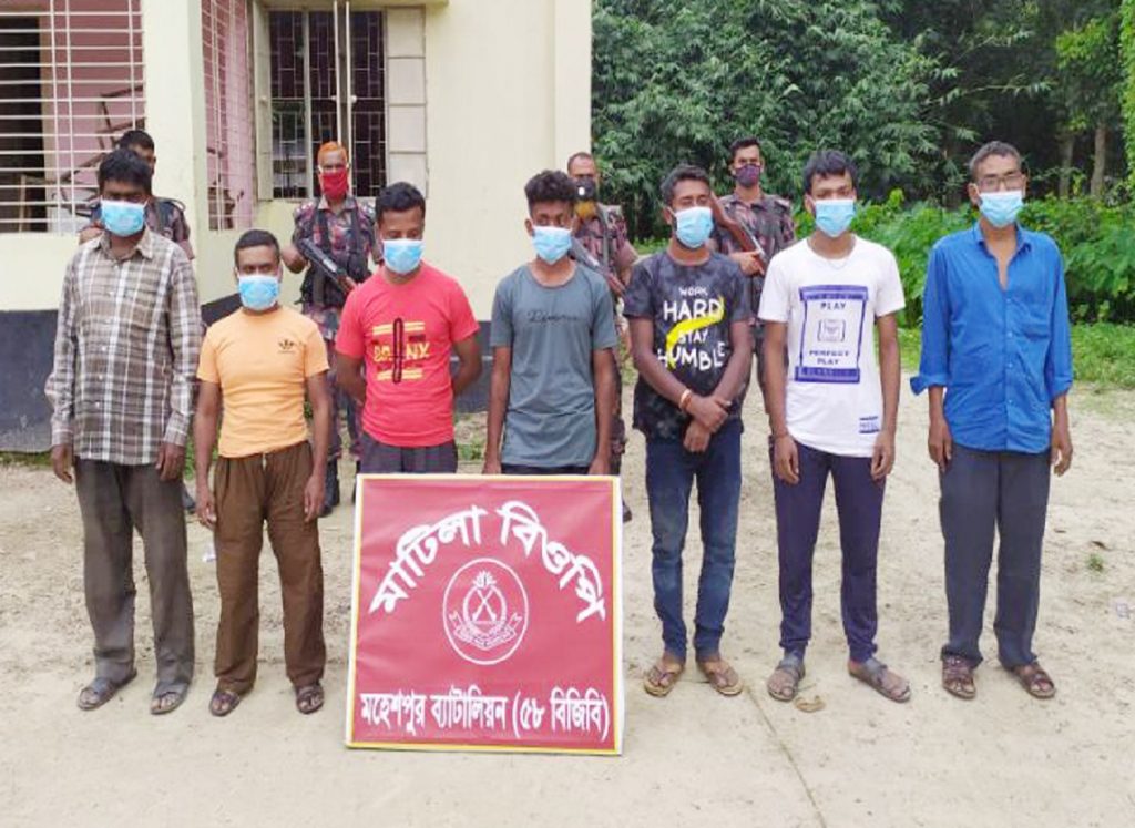 সোমবার (১৯ জুলাই) ভোর রাতে মহেশপুর উপজেলার সীমান্তবর্তী মাটিলা এলাকা থেকে তাদের আটক করা হয়। বিজিবি জানায়, মাটিলা সীমান্ত এলাকা দিয়ে কয়েকজন বাংলাদেশী ভারত থেকে অবৈধভাবে বাংলাদেশে প্রবেশ করছে এমন সংবাদের ভিত্তিতে অভিযান চালিয়ে ৭ জন বাংলাদেশি নাগরিককে আটক করা হয়।