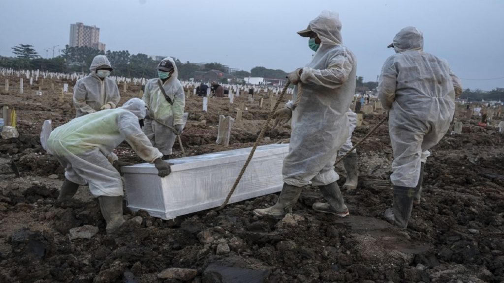 করোনায় তীব্র শ্বাসকষ্ট হলেও জায়গা মেলেনি হাসপাতালের বেডে। ফলাফল বাড়িতেই চিকিৎসাহীন অবস্থায় মৃত্যু। সমগ্র ইন্দোনেশিয়া জুড়েই যেন মৃত্যুর মিছিল। মরদেহের সৎকার করতে গিয়ে যেন হাঁপিয়ে উঠছেন স্বেচ্ছাসেবীরা।