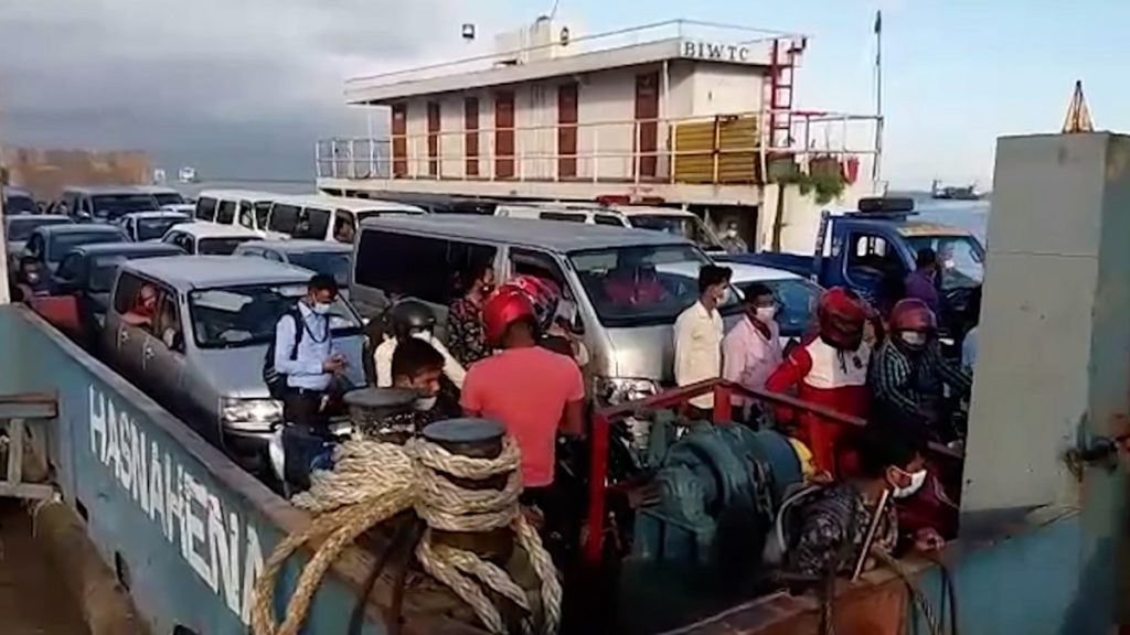 দৌলতদিয়া-পাটুরিয়া ও শিমুলিয়া-বাংলাবাজার ফেরিঘাটে লকডাউনের বিধিনিষেধ মানা হচ্ছে না।