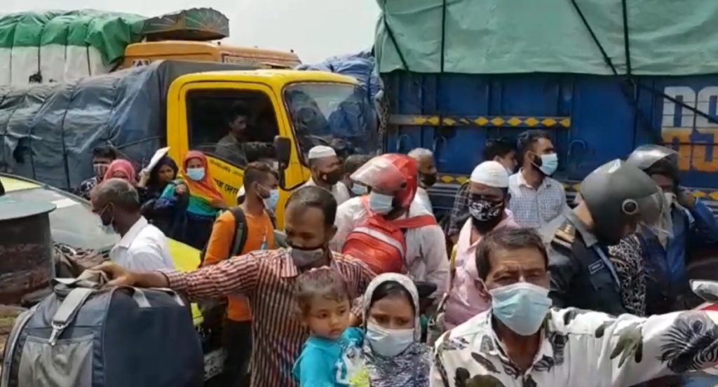 আজ লকডাউন বাস্তবায়ন ও ফেরিতে যাত্রী চলাচল নিয়ন্ত্রণে ঘাটের অভিমুখে আইনশৃঙ্খলা বাহিনীর চেকপোস্ট বসানো হয়েছে। তবে তা অতিক্রম করে যাত্রী যানবাহনকে ঘাটে আসতে দেখা যাচ্ছে। এক্ষেত্রে যাত্রীরা নানা অজুহাত দেখাচ্ছে আইনশৃঙ্খলা বাহিনীকে। অন্যদিকে বাংলাবাজার থেকে শিমুলিয়া ঘাটে আসা ঢাকামুখী যাত্রীদের গন্তব্যের উদ্দেশে কিলোমিটারের পর কিলোমিটার পায়ে হেঁটে পাড়ি দিতে দেখা যায়।