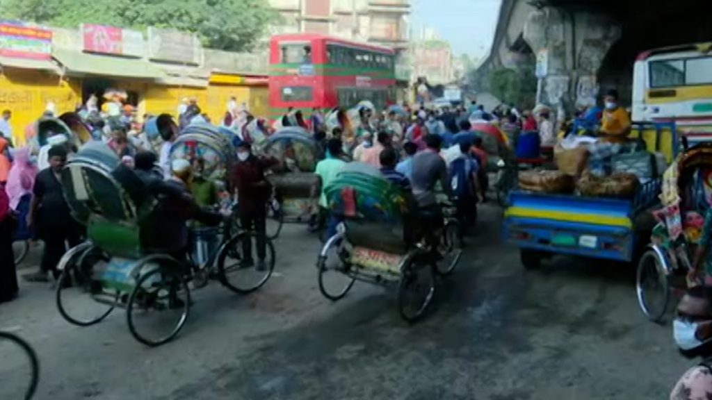 লকডাউনের পঞ্চম দিন সকালে ঢাকার প্রবেশ মুখ যাত্রাবাড়ি এলাকায় ছিল মানুষের ঢল। সেই সাথে রাজধানীর সড়কে বেড়েছে যানবাহনের চাপ। একই সাথে বেড়েছে মানুষের চলাচলও।