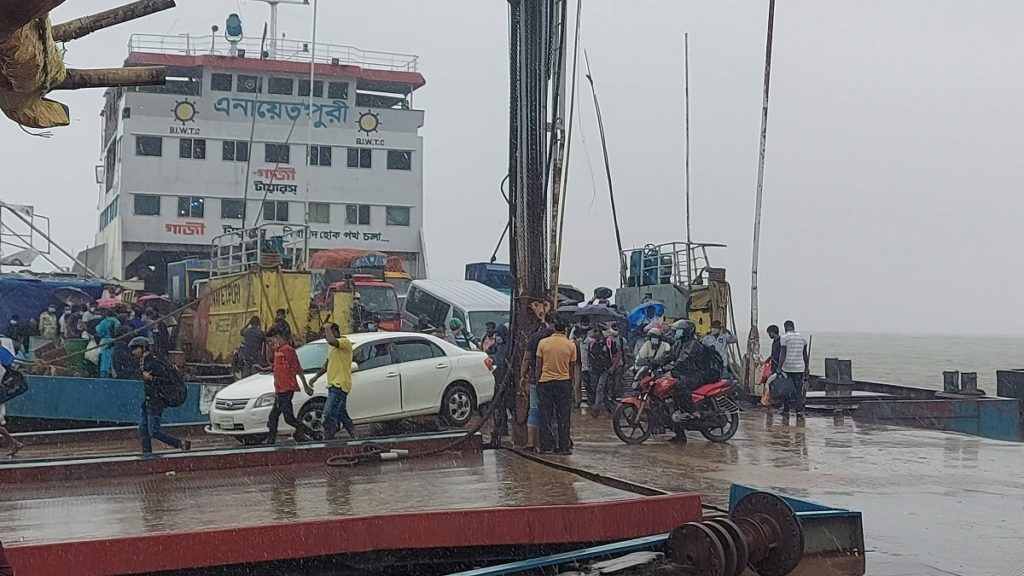 এদিকে, আজ বৃহস্পতিবার কঠোর বিধিনিষেধের সপ্তম দিনেও এই নৌরুটে সচল সাতটি ফেরিতে সকাল থেকে শতশত যাত্রী এবং ব্যাক্তিগত গাড়ি পারাপার হতে দেখা গেছে। প্রতিটি ফেরিতে ছিল ঢাকামুখী যাত্রীদের চাপ।