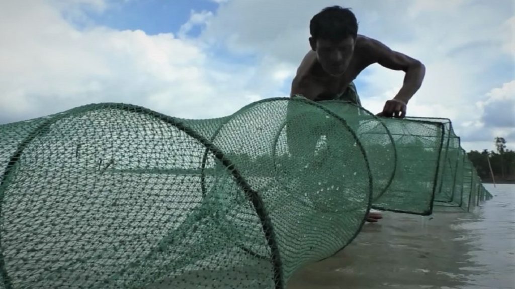 জালগুলো ভাটিতে নদীর ঢালের দিকে খুঁটিতে বেঁধে রাখা হয়। এসব জালে ছোট-বড় মাছের সাথে একেবারে ক্ষুদ্র পোনাও ধরা পড়ে।