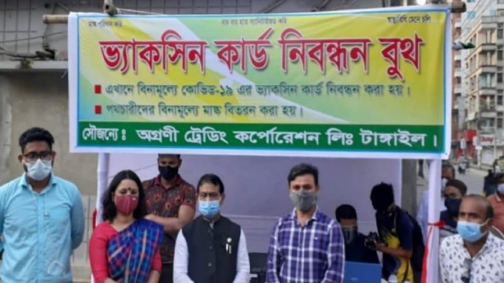গত ৪ আগস্ট টাঙ্গাইল শহরের আকুর টাকুর পাড়াস্থ জেলা সদর রোডের আবহাওয়া অফিস মোড়ে অগ্রণী ট্রেডিং করপোরেশন লিমিটেড টাঙ্গাইল বিএটি বাংলাদেশের পক্ষ থেকে টিকা নিবন্ধনের এই সেবা দিয়ে যাচ্ছে। কক্সবাজারে বিএটি বাংলাদেশের পক্ষ থেকে করোনা টিকা নিবন্ধনের কাজ চলছে। এছাড়া টিকা রেজিস্ট্রেশন কার্যক্রম শুরু হয়েছে ঢাকা ও কুষ্টিয়াসহ অন্যান্য জেলাতেও।