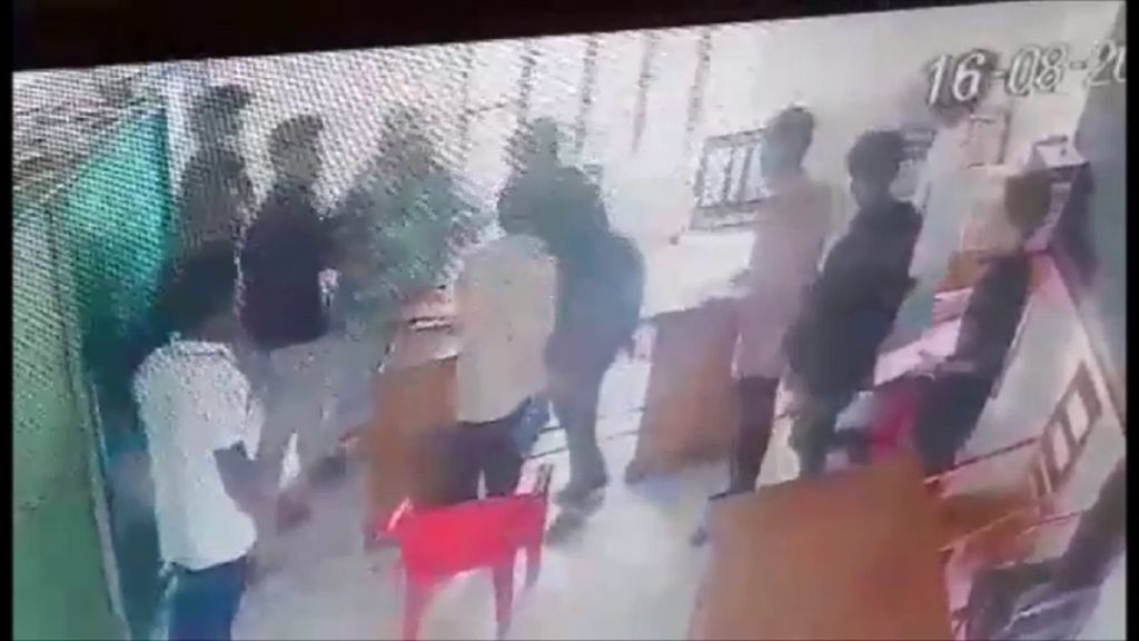 পিরোজপুরের মঠবাড়িয়ার সাফা ডিগ্রি কলেজের ভারপ্রাপ্ত অধ্যক্ষ বিনয় কৃষ্ণ বলকে জুতাপেটা করার একটি ভিডিও সামাজিক যোগাযোগ মাধ্যমে ভাইরাল হয়েছে।