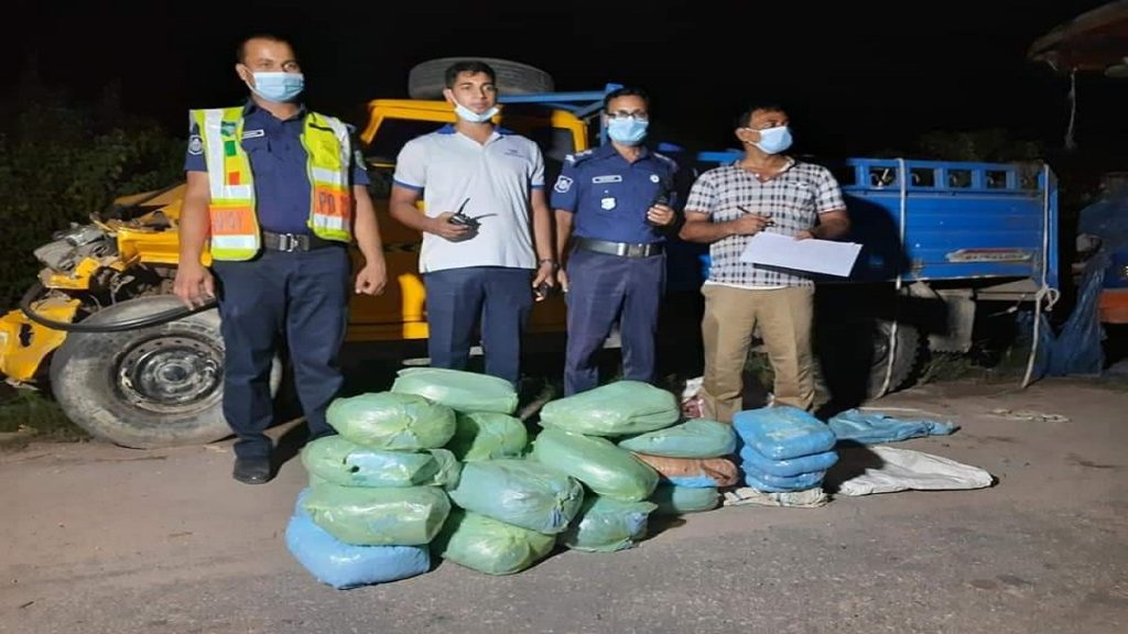 মুন্সিগঞ্জের গজারিয়ায় দুর্ঘটনা কবলিত একটি পিকআপ ভ্যান থেকে ৪০ কেজি গাঁজা জব্দ করেছে ভবেরচর হাইওয়ে পুলিশ।