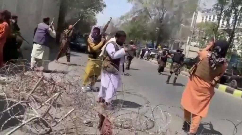 কাবুলে অবস্থিত পাকিস্তানের দূতাবাসের সামনে মঙ্গলবার (৭ সেপ্টেম্বর) প্রায় ৭০ জন আফগানি বিক্ষোভে নামেন। বিক্ষোভকারীদের ছত্রভঙ্গ করতে সেখানে ফাঁকা গুলি ছোঁড়ে তালেবান। তবে এ ঘটনায় হতাহতের কোনো তথ্য মেলেনি। খবর বিবিসির।