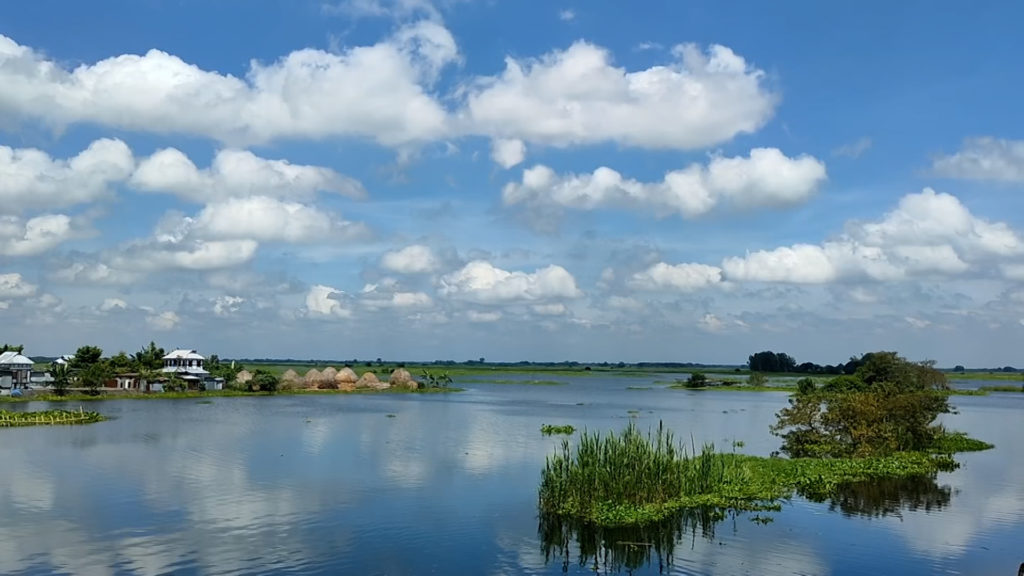 বর্ষা শেষে মুন্সিগঞ্জের আড়িয়ল বিল এখন পানিতে টইটুম্বুর। অপরূপ প্রাকৃতিক সৌন্দর্যে মুগ্ধতা ছড়াচ্ছে নীল আর কাজলকালো জলরাশি। নীল আকাশে পেজা তুলোর মতো মেঘ ছায়া ফেলে বিস্তীর্ণ জলরাশিতে। বাতাসে দোল খায় নাম না জানা সব জলজ উদ্ভিদ। সৌন্দর্যের পাল্লা বাড়িয়ে দিতে মাঝে মাঝে আকাশে যোগ হয় একটুকরো রংধনু।