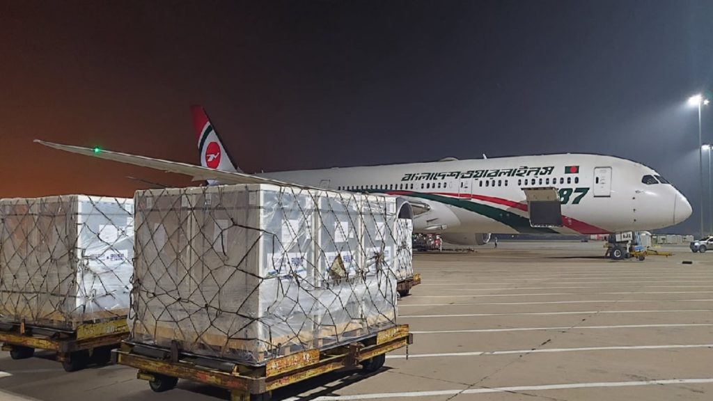 দূতাবাসের পক্ষ থেকে ফেসবুকে লেখা হয়, বাংলাদেশের উদ্দেশে ৫ মিলিয়ন ডোজ সিনোফার্মের টিকা চীনের তিয়ানজিয়ান বিমানবন্দর ছেড়েছে।
