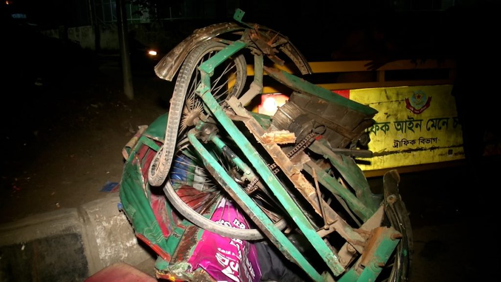 প্রত্যক্ষদর্শীরা জানান, শুক্রবার রাতে বাংলামোটর থেকে কারওয়ানবাজারের দিকে বেপরোয়া গতিতে ট্রাকটি এসে সার্ক ফোয়ারা মোড়ে রিক্সাকে ধাক্কা দেয়। এতে রিক্সাটি দুমড়ে-মুচড়ে যায়। গুরুতর আহত অবস্থায় রিকশাচালক ও সিএনজি চালককে হাসপাতালে নেয়া হলে চিকিৎসকরা রিকশাচালক ফরহাদকে মৃত ঘোষণা করেন।