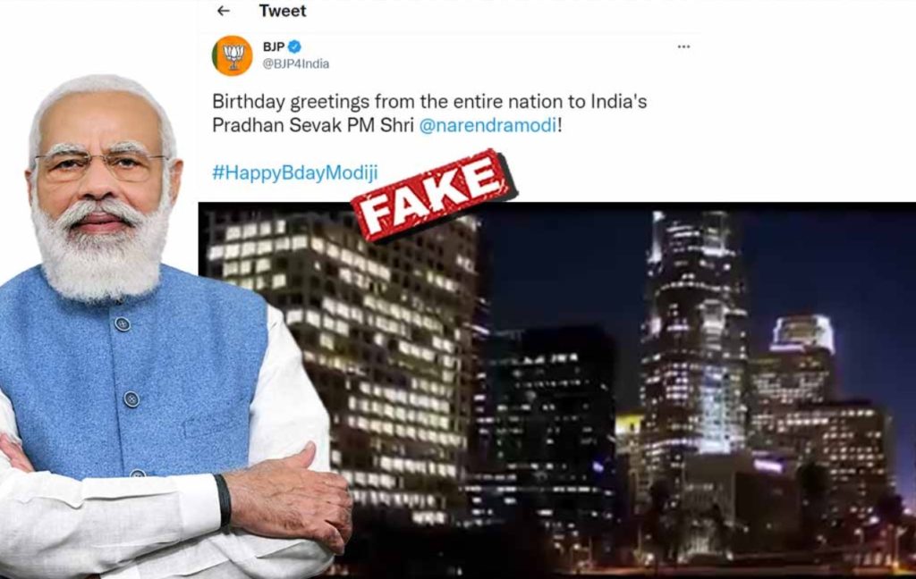 ভারতের প্রধানমন্ত্রী নরেন্দ্র মোদির ৭১তম জন্মদিন উপলক্ষে একটি ভিডিয়ো প্রকাশ করেছে বিজেপি। টুইটারে আপলোড করা সেই ভিডিওতে মোদির আমলে দেশটির বিভিন্ন ক্ষেত্রে সাফল্যের কথা তুলে ধরা হয়েছে। ভারতের সমৃদ্ধশালী কয়েকটি শহরের ছবিও দেখানো হয়েছে ভিডিয়োর শেষের দিকে। আর সেখানেই যুক্তরাষ্ট্রের লস অ্যাঞ্জেলসের ছবি ব্যবহারের অভিযোগ উঠেছে। ইতিমধ্যেই অনেকে তা চিহ্নিতও করেছেন।
