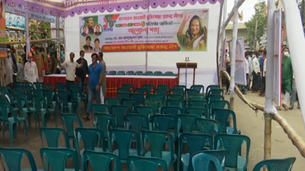 অনুষ্ঠান সফল করতে ট্রাকভর্তি করেও কর্মী নিয়ে আসেন সংগঠনের নেতারা। তবে সংগঠন নিয়ে নানা হুমকি ধামকি দিলেও পুলিশের হস্তক্ষেপে হঠাৎ পাল্টে যায় দৃশ্যপট। মাত্র পাঁচ মিনিটে গুটিয়ে ফেলা হয় সকল আয়োজন।