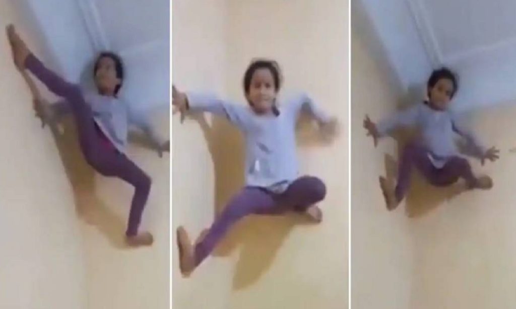 ওই ভিডিওটিতে দেখা যাচ্ছে, ঘরের মধ্যে দেয়ালের একটি কোণায় দাঁড়িয়ে রয়েছে মেয়েটি। দেখে মনে হচ্ছে বিছানার উপরেই দাঁড়িয়ে আছে সে। তার পর হঠাৎ করে দু’দিকের দেয়ালের সাহায্যে তরতর করে উঠতে শুরু করল সে। মুহূর্তের মধ্যে ঘরের ছাদ ছুঁয়ে ফেলে ওই বালিকা। ওই অবস্থাতেই শুধুমাত্র হাতের সাহায্য নিয়ে কয়েক সেকেন্ড শূন্যে পা ছুড়তেও দেখা যায় তাকে। তার পরে এক লাফে আবার নিচে নেমে আসে মেয়েটি।