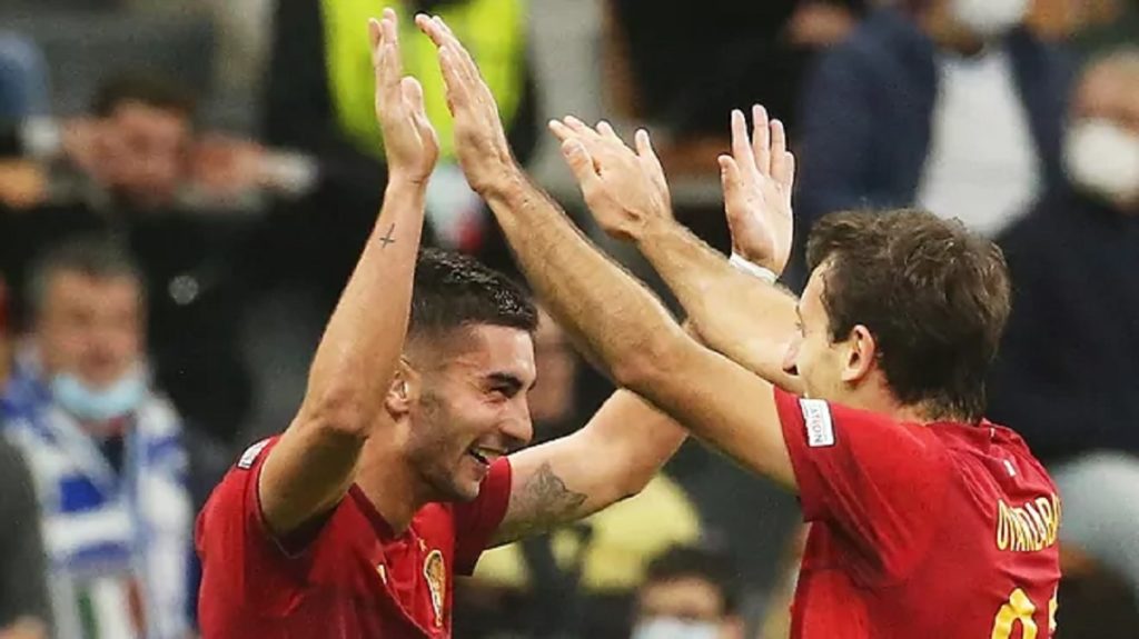 ঘরের মাঠ সান সিরোতে স্পেনকে আতিথ্য দেয় ইতালি। কিন্তু ম্যাচের শুরুতে এগিয়ে যায় অতিথিরা। ১৭ মিনিটে ওয়ারসাবালের ক্রসে হেড থেকে করা ফেরান তোরেসের গোলে লিড নেয় স্পেন। ম্যাচের ৪২ মিনিটে বড় ধাক্কা খায় ইতালি। দ্বিতীয় হলুদ কার্ড দেখে ইতালি অধিনায়ক বোনুচ্চি মাঠ ছাড়লে ১০ জনের দলে পরিণত হয় আজ্জুরিরা।
