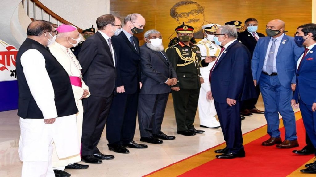 বিমানবন্দরের ভিভিআইপি লাউঞ্জে রাষ্ট্রপতিকে বিদায় জানান মুক্তিযুদ্ধ বিষয়ক মন্ত্রী আ ক ম মোজাম্মেল হক, কূটনৈতিক কোরের ডিন এবং বাংলাদেশে ভ্যাটিকানের রাষ্ট্রদূত আর্চবিশপ জর্জ কোচারি, ঢাকায় ব্রিটিশ হাইকমিশনার রবার্ট চ্যাটারটন ডিকসন, বাংলাদেশে জার্মানির রাষ্ট্রদূত অচিম ট্রস্টার, মন্ত্রিপরিষদ সচিব, তিন বাহিনীর প্রধানগণ, প্রধানমন্ত্রীর মুখ্য সচিব, পুলিশ মহাপরিদর্শক এবং পদস্থ বেসামরিক ও সামরিক কর্মকর্তারা।