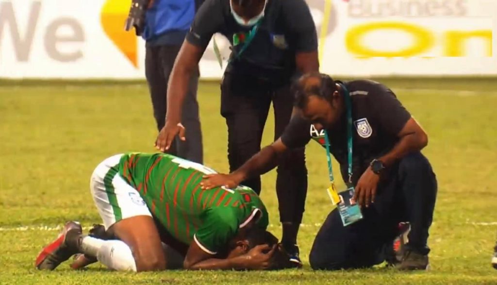 বিতর্কিত পেনাল্টিতে গোল খাওয়ার পর মাঠে ছড়ায় উত্তেজনা।