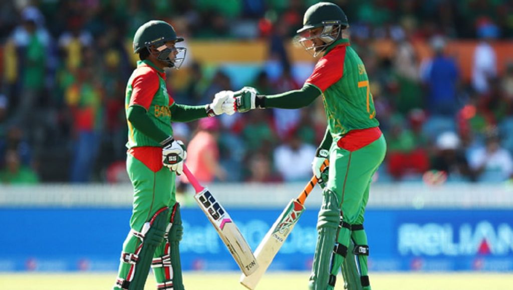 মুশফিক ২৫ বলে ২৯ এবং সাকিব ২২ বলে ১৬ রান নিয়ে ব্যাট করছেন। প্রতিবেদনটি লেখা পর্যন্ত বাংলাদেশের সংগ্রহ ১০ ওভারে ২ উইকেটে ৫৯ রান। জয়ের জন্য তাদের চাই ১০ ওভারে ৮২ রান।