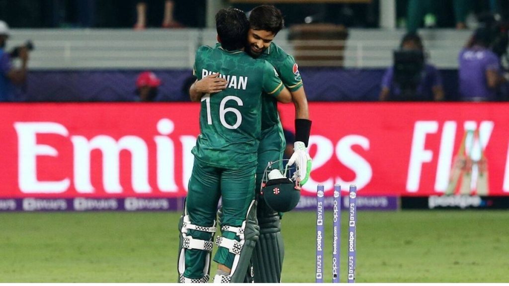 টি-টোয়েন্টি বিশ্বকাপে নিজেদের প্রথম ম্যাচে ইন্ডিয়ার করা ১৫২ রানকে মামুলি বানিয়ে ওপেনিং জুটিতেই লক্ষ্যে পৌঁছে যায় পাকিস্তান। ৫২ বলে ৬৮ রান করে অপরাজিত থাকেন দলটির অধিনায়ক বাবর আজম। আর ৫৫ বলে ৭৯ রান করে অপরাজিত থাকেন উইকেটকিপার ব্যাটসম্যান মোহাম্মদ রিজওয়ান।