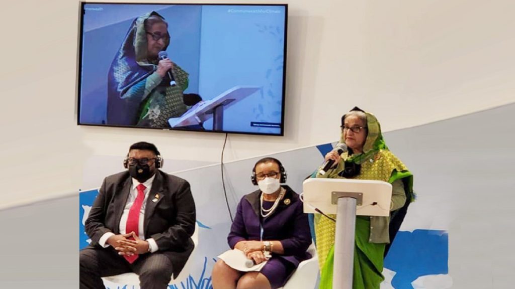 প্রধানমন্ত্রী আজ সোমবার (১ নভেম্বর) স্কটল্যান্ডের গ্লাসগোতে কোপ২৬ সম্মেলনস্থলের কমনওয়েলথ প্যাভিলিয়নে ‘সিভিএফ-কমনওয়েলথ হাই-লেভেল ডিসকাসন অন ক্লাইমেট প্রসপারিটি পার্টনারশিপ’ শীর্ষক আলোচনায় প্রধান অতিথি হিসেবে ভাষণদানকালে এসব কথা বলেন।