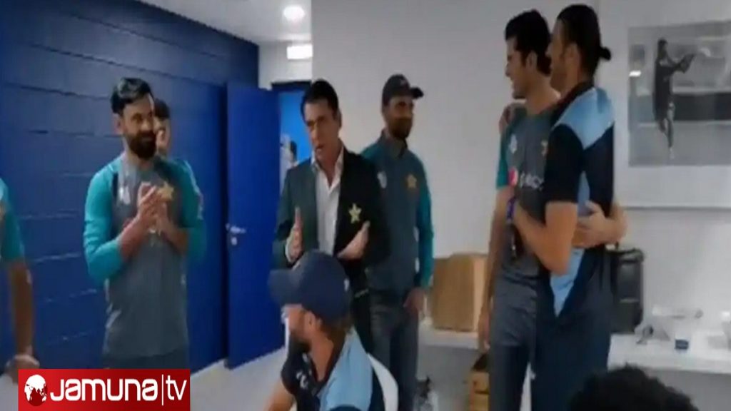 ম্যাচ হারলেও লড়াকু মানসিকতায় পাকিস্তান দলের মন জয় করেছে নামিবিয়া। তাই তো ম্যাচ শেষে ড্রেসিংরুমে গিয়ে দলটিকে সাধুবাদ জানালেন হাফিজ-শাহিন আফ্রিদিরা। আকস্মিক এই ঘটনায় অভিভূত নামিবিয়ান ক্রিকেটাররা। হাততালি দিয়ে তাদের অভিবাদন জানান পাকিস্তানি ক্রিকেটাররা।