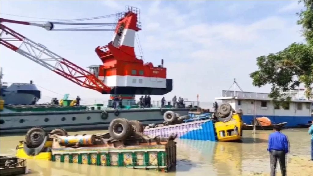 গত ২৭ অক্টোবর মানিকগঞ্জের পাটুরিয়া ঘাটে পণ্যবাহী যানবাহন ও মোটরসাইকেলসহ বেশকিছু গাড়ি নিয়ে ডুবে যায় ফেরি শাহ আমানত।