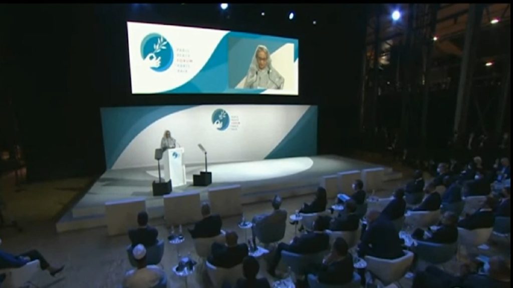 শুক্রবার (১২ নভেম্বর) প্যারিস পিস ফোরামে ‘সাউথ-সাউথ অ্যান্ড ট্রায়াঙ্গুলার কোঅপারেশন’ শীর্ষক উচ্চ পর্যায়ের একটি প্যানেল আলোচনায় এ আহ্বান জানান তিনি।