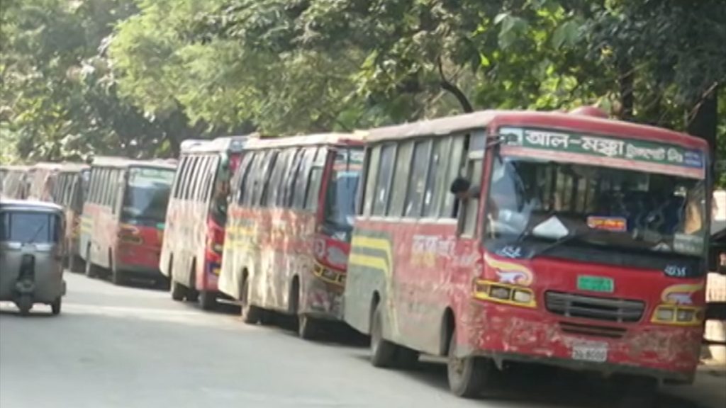 ওয়ে বিল ও সিটিং সার্ভিস বন্ধের দাবিতে রাজধানীর মিরপুরে বাস চালানো বন্ধ করে দিয়েছে চালক-হেলপাররা।