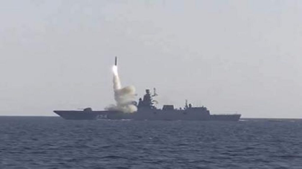 অ্যাডমিরাল গরশকভ যুদ্ধজাহাজ থেকে ছোঁড়া হয় জিরকন নামের এই ক্ষেপণাস্ত্রটি। আর্কটিক সাগরে লক্ষ্যবস্তুতে সফলভাবে আঘাত হানে বলে জানিয়েছে মস্কো। শব্দের চেয়ে পাঁচ গুণ বেশি গতি সম্পন্ন হাইপারসনিক ক্রুজ ক্ষেপণাস্ত্রটি কয়েক হাজার কিলোমিটার পথ পাড়ি দিতে সক্ষম। এমনকি লক্ষ্যবস্তুতে আঘাত হানার মাঝপথে কৌশল এবং পথ পরিবর্তন করতে সক্ষম এটি।