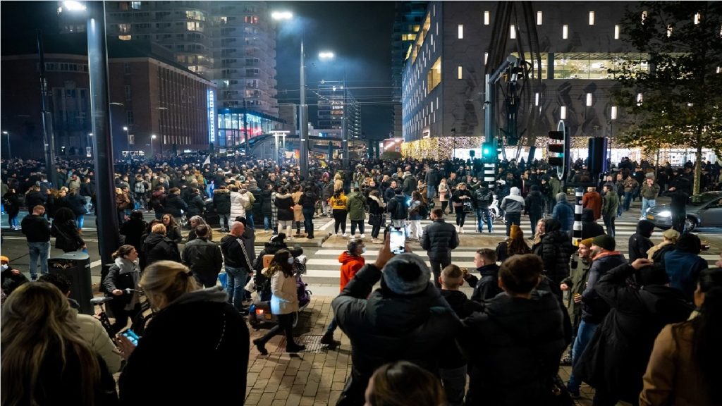 শুক্রবার (১৯ নভেম্বর) রোটরডামে নিরাপত্তা বাহিনীর সাথে দফায় দফায় সংঘর্ষে জড়ায় বিক্ষোভকারীরা। ভাইরাসের সংক্রমণ বেড়ে যাওয়ায় তিন সপ্তাহের লকডাউন দেয় দেশটির সরকার। এর পাশাপাশি জরুরি প্রয়োজনে ভ্যাকসিন পাশ নিয়ে চলাফেরা বাধ্যতামূলক করা হয়। নিষেধাজ্ঞা জারি করা হয় সব ধরণের জনসমাগমের ওপর।