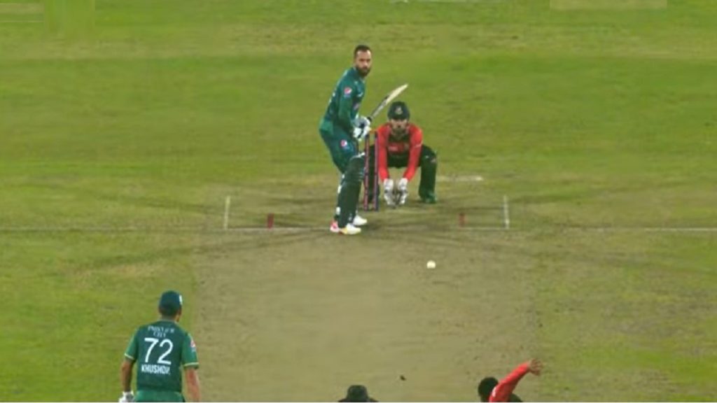 কিন্তু ব্যাটারের চাইতে যেন বেশি ঘাবড়ানোর পরিস্থিতি তৈরি হলো আম্পায়ারদের জন্যই। একবারে শেষ মুহূর্তে বলটি খেলার সিদ্ধান্ত থেকে সরে আসেন ব্যাটার নওয়াজ, বলটি লাগে স্টাম্পে। আম্পায়ারদের দিকে তাকিয়ে দু’পক্ষই। ডেড বল হলে পুনরায় একটি বল খেলার সুযোগ পাবে পাকিস্তান, আর ডেড বল না হলে বাংলাদেশ জিতবে ১ রানে!