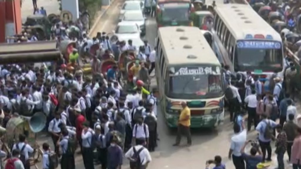 এসময় বকশি বাজার মোড় অবরোধ করে সাত কলেজের শিক্ষার্থীরা বিক্ষোভ করেছে। অর্ধেক ভাড়া দেয়া নিয়ে কথা কাটাকাটির জেরে গতকাল ঢাকা কলেজের এক শিক্ষার্থীর গায়ে হাত তোলে বাসের সহকারী। এর আগে, নারী শিক্ষার্থীকে ধর্ষণের হুমকি দেয়া, বাস থেকে নামিয়ে দেয়ার মত ঘটনাও ঘটেছে। বিক্ষোভে শিক্ষার্থীদের ‘হাফ পাস আমার অধিকার, নয় কোনো আবদার’ এমন স্লোগান দিতে দেখা যায়।