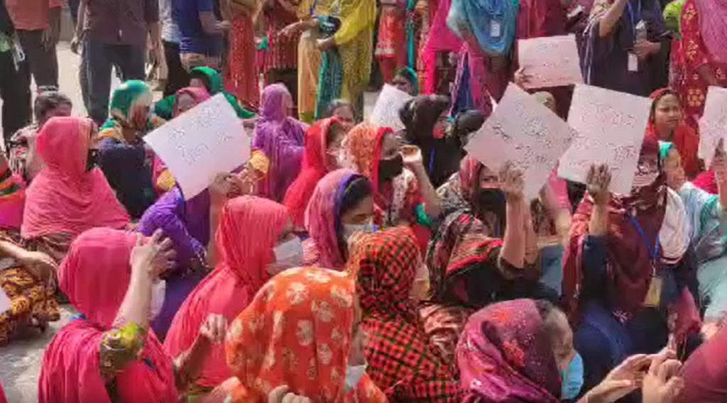 বিক্ষোভকারীদের দাবি- কারখানা পুরোদমে চলছে। শিপমেন্টও ঠিকমতো যাচ্ছে কিন্তু আমাদের বেতন দিচ্ছে না। মালিক বলছে তাদের টাকা নাকি ব্যাংক দিচ্ছে না।