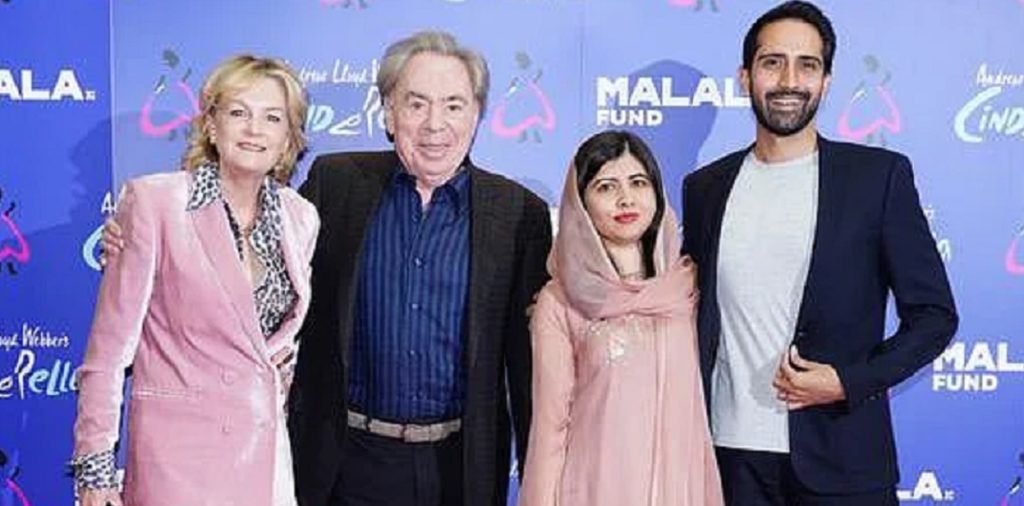 শান্তিতে নোবেল জয়ী মালালা ইউসুফজাই পাকিস্তানের অধিবাসী আসার মালিকের সাথে বিয়ে সেরেছেন গত ৯ নভেম্বর। বিয়ের পর দ্বিতীয়বারের মতো প্রকাশ্যে এলেন নবদম্পতি। গত সোমবার (২২ নভেম্বর) তাদের একসাথে দেখা গেছে লন্ডনে আয়োজিত ব্রিটিশ গীতিকার অ্যান্ড্রু লয়েড ওয়েবারের সিনড্রেলা নামের একটি সংগীত আয়োজনের উদ্বোধনী অনুষ্ঠানে।
