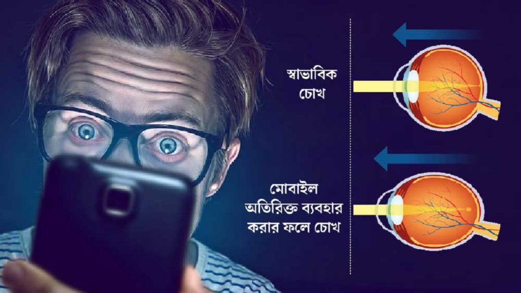 দীর্ঘ দিন ধরে এটি চলতে থাকলে, চোখও চেষ্টা করে আলো যাওয়ার পথটিকে সরু করে দিতে। তাতেই বদলায় চোখের গড়ন। একে চিকিৎসার পরিভাষায় বলা হচ্ছে ‘শর্ট সাইটেড আই’। আর এর ফলে চোখের ভেতরের অংশটি আরও বাইরে বের হয়ে আসেছ।