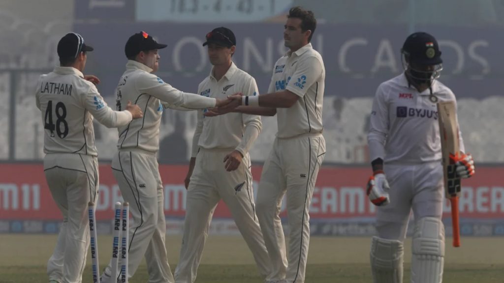 টিম সাউদির দুর্দান্ত টেস্ট বোলিং পারফরমেন্সে কানপুরে প্রথম ইনিংসে ৩৪৫ রানে করে অলআউট হয়েছে ভারত। জবাবে ব্যাট করতে নেমে দুই কিউই ওপেনার টম ল্যাথাম ও উইল ইয়ানংয়ের দৃঢ়তায় শেষ খবর পর্যন্ত নিউজিল্যান্ডের সংগ্রহ বিনা উইকেটে ৯৩ রান।