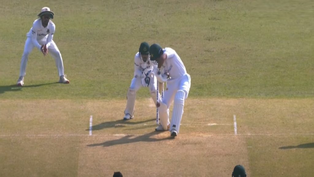 পাকিস্তান ওপেনার আবদুল্লাহ শফিকের তখন রান মাত্র ৯। তাইজুল ইসলামের বল পিচ করে ভেতরে ঢুকে শফিকের প্যাডে লাগে। জোরালো আবেদন করেছিলেন তাইজুল। কিন্তু আম্পায়ার সারা দেননি তাইজুলের আবেদনে। তখন মমিনুলও রিভিউ নেননি। হয়তো ভেবেছিলেন, তাতে রিভিউটি খরচ হয়ে যাওয়ার শঙ্কা থাকবে। তার সাথে যোগ হয় তাইজুলের আত্মবিশ্বাসহীনতা। তাকেও রিভিউয়ের জোর দাবি জানাতে দেখা যায়নি। তবে পরবর্তীতে রিপ্লে দেখা বোঝা গেছে, মমিনুল কিছুটা আক্রমণাত্মক হলেই পারতেন। কারণ বল আঘাত করেছিল শফিকের প্যাডে। আর ছিল অফ ও মিডল স্ট্যাম্পের লাইনে। তখন ঝুঁকি নেয়ার সাহসটা অধিনায়কের কাছ থেকে এলেই আর প্রায় আড়াই সেশন ধরে উইকেটের জন্য মাথা কুটে মরতে হয় না।
